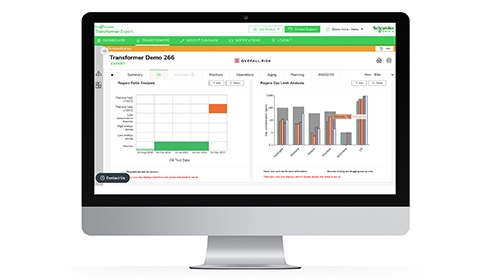 A través de potentes conocimientos del sistema y análisis avanzados, obtendrás información operativa y sobre antigüedad, junto con una evaluación de riesgos para ayudar a mantener los transformadores en buenas condiciones durante más tiempo mediante: • Toda la flota de transformadores y sus condiciones • Tableros de control eficientes y reveladores para cada transformador • Informes de pruebas de aceite de Análisis de gas disuelto (DGA) en el centro de datos