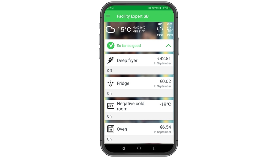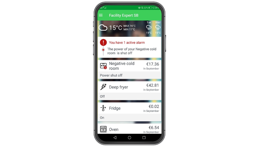 The simple app interface lets you monitor temperature and energy consumption for your equipment, from anywhere, at any time.