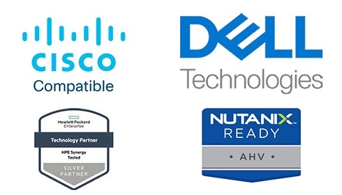 - Nutanix Ready-gecertificeerd, Dell Technology Partner, HPE Technology Silver Partner en Cisco-compatibel.
