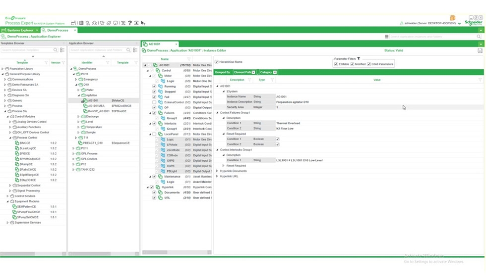 - Ecostruxure Process Expert prend en charge plusieurs bibliothèques de segments et à usage général.