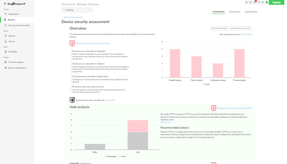 - Un ensemble unique d'informations - qui vous offre une visibilité sur les anciens firmwares, le matériel obsolète et les configurations vulnérables - vous aide à identifier et à générer des rapports sur les vulnérabilités actuelles en matière de sécurité, à vous conformer aux politiques et réglementations de sécurité et à comprendre les meilleures pratiques du secteur en matière de sécurité.