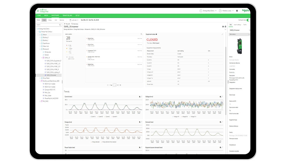 EcoStruxure Energy Hub (Teil von EcoStruxure Building Activate) ist eine abonnierte Energiemanagementsoftware, die Gebäudeeigentümern und Bedienern die Möglichkeit bietet, die Energie ihrer Gebäude ganz einfach zu verwalten. In erster Linie stellt sie die Einhaltung von Energierichtlinien sicher und unterstützt die Erreichung von Energieeffizienzzielen bei gleichzeitiger Verbesserung des Anlagen- und Nachhaltigkeitsmanagements über einzelne oder mehrere Gebäude hinweg.