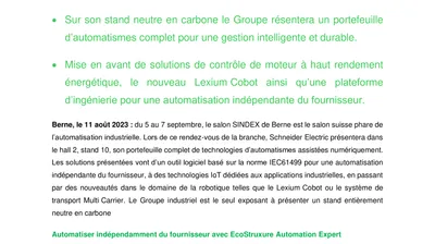 Schneider Electric présente des solutions IIoT pour l’industrie intelligente du futur au salon SINDEX à Berne