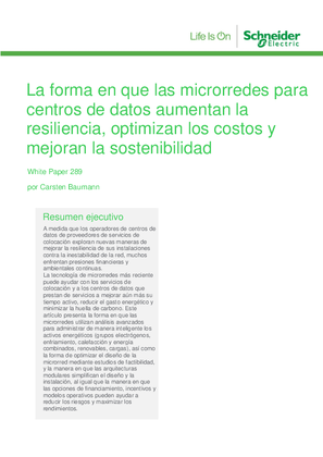 A medida que los operadores de centros de datos de proveedores de servicios de colocación exploran nuevas maneras de mejorar la resiliencia de sus instalaciones contra la inestabilidad de la red, muchos enfrentan presiones financieras y ambientales continuas. La tecnología de microrredes más reciente puede ayudar con los servicios de colocación y a los centros de datos que prestan de servicios a mejorar aún más su tiempo activo, reducir el gasto energético y minimizar la huella de carbono. Este artículo presenta la forma en que las microrredes utilizan análisis avanzados para administrar de manera inteligente los activos energéticos (grupos electrógenos, enfriamiento, calefacción y energía combinados, renovables, cargas), así como la forma de optimizar el diseño de la microrred mediante estudios de factibilidad, y la manera en que las arquitecturas modulares simplifican el diseño y la instalación, al igual que la manera en que las opciones de financiamiento, incentivos y modelos operativos pueden ayudar a reducir los riesgos y maximizar los rendimientos.