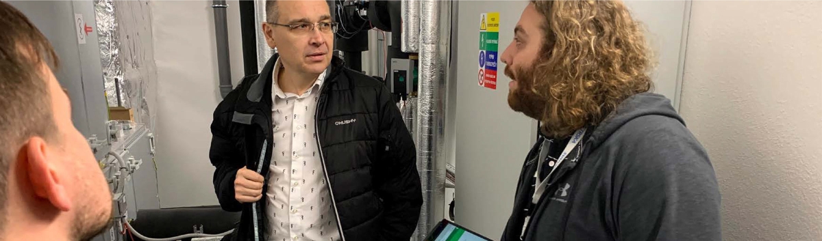 Podívejte se do budovy, na její řízení. Systém KNX a EcoStruxure™ řídí osvětlení, vzduchotechniku, vytápění, rekuperaci, spotřebu vody, distribuci tepla a energii z fotovoltaické elektrárny.