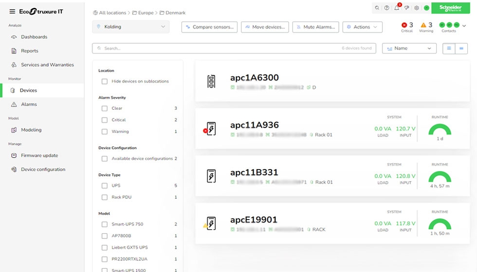 - EcoStruxure IT Expert giver din partner mulighed for at få indsigt i dine enhedsdata i skrivebeskyttet tilstand for at hjælpe med at monitorere dit udstyr mere effektivt. Du kan til enhver tid vælge at fravælge dette.