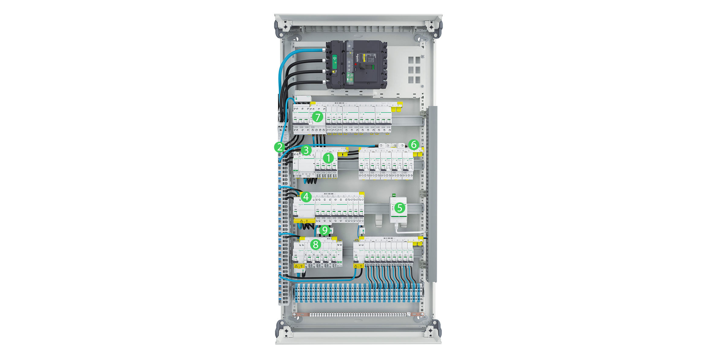 • Συντηρήστε και αναβαθμίστε τους τέλεια σχεδιασμένους και ενσωματωμένους πίνακες τελικής διανομής με ευκολία• Τέλεια αντιστοιχία με τη διάταξη του ηλεκτρικού διαγράμματος• Βελτιωμένη αξιοπιστία και απλοποίηση της καλωδίωσης• Απλοποιημένη εγκατάσταση, για εξοικονόμησης χρόνου και χώρου• Συνδυαστική αξιοπιστία, προστασία και ευκολία χρήσης για νέες και ανακαινισμένες ηλεκτρικές εγκαταστάσεις• Δυνατότητα προσθήκης βοηθητικών στοιχείων για απομακρυσμένη παρακολούθηση και έλεγχο• Δυνατότητα προσθήκης διάταξης προστασίας διαρροής (Vigi) για προστασία από διαρροή• Αξιοποίηση της ενισχυμένης προστασίας έναντι σφάλματος ηλεκτρικού τόξου (Acti9 Active Vigi Arc)