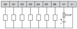 Output frequency | 100 kHz for fast output (PWM/PLS mode) at Q0...Q1 5 kHz for output at Q2...Q3 0.1 kHz for output at Q4...Q6 |