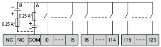 Maximum cable distance between devices | Экранированный кабель: <10 m для быстродействующий вход Неэкранированный кабель: <30 m для выход Неэкранированный кабель: <30 m для Дискретный вход Неэкранированный кабель: <1 m для аналоговый вход Экранированный кабель: <3 m для быстродействующий выход |
