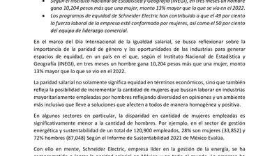 Con programas de equidad, Schneider Electric cierra las brechas de la desigualdad salarial