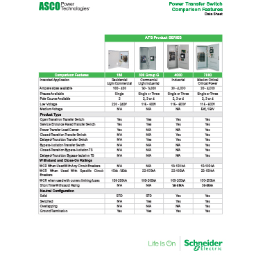 Los interruptores de transferencia ASCO serie 7000 proporcionan soluciones líderes en el sector para transferir cargas críticas a fuentes de alimentación de emergencia.