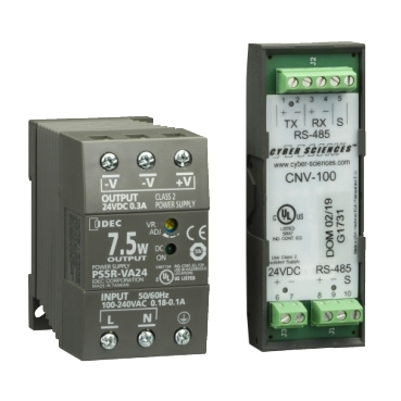 El CNV-100 está diseñado para ser montado en riel DIN y tiene una base de montaje integrada para tal fin. Se proporcionan LEDs para indicar la presencia de alimentación de control de 24 VDC y transferencia de datos en serie en ambas direcciones.