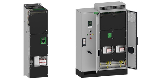 ATV600: drives focuses on fluid management, processing and energy-saving depending on customer requirements. For cabinets, Altivar Process drives are available in wall-mounting and floor-standing integrated solutions.These Process drives provide a wide range of integrated functions, such as:• Safety and automation functions for the most demanding applications.• Various optional fieldbus modules are available for seamless integration into the main automation architectures.• I/O standard facilitates adaptation of specific applications.• Intuitive commissioning through graphic display terminal.• Embedded web server for remote monitoring and control access.• Integrated harmonic filters help in the protection of grids and save energy.• Installation of EMC conformity through integrated EMC filters.