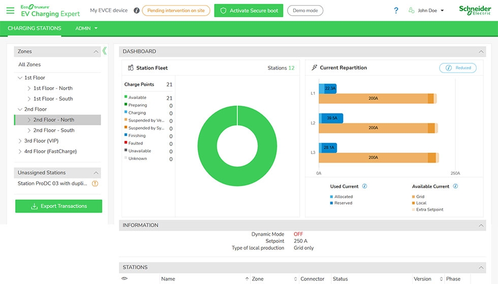 EcoStruxure EV Charging Expert is een belastingsbeheersysteem dat u helpt uw EV-infrastructuur efficiënt te beheren, rekening houdend met het totale energieverbruik van het gebouw en met ondersteuning voor geavanceerde optimalisatiescenario's zoals tariefbeheer en eigen verbruik.