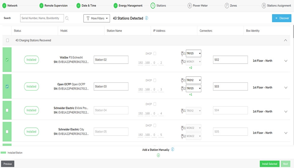 - Automatische scan en configuratie van laadstations
