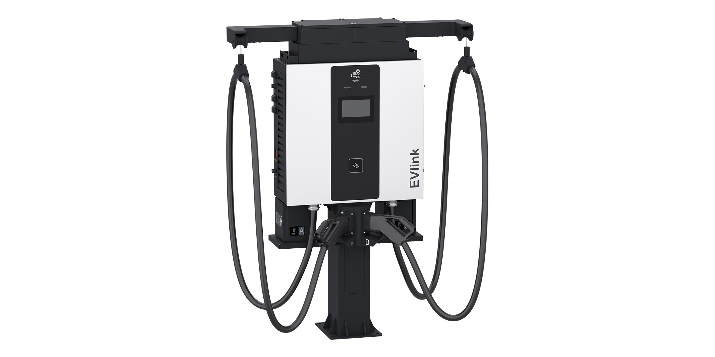Wall-mounted or pedestal installation, along with a customisable look and feel, enables simultaneous charging of two vehicles for maximum power usage efficiency, provides future-proof solutions for diverse EV charging needs, and is interoperable with any third-party Charging Stations Management System.