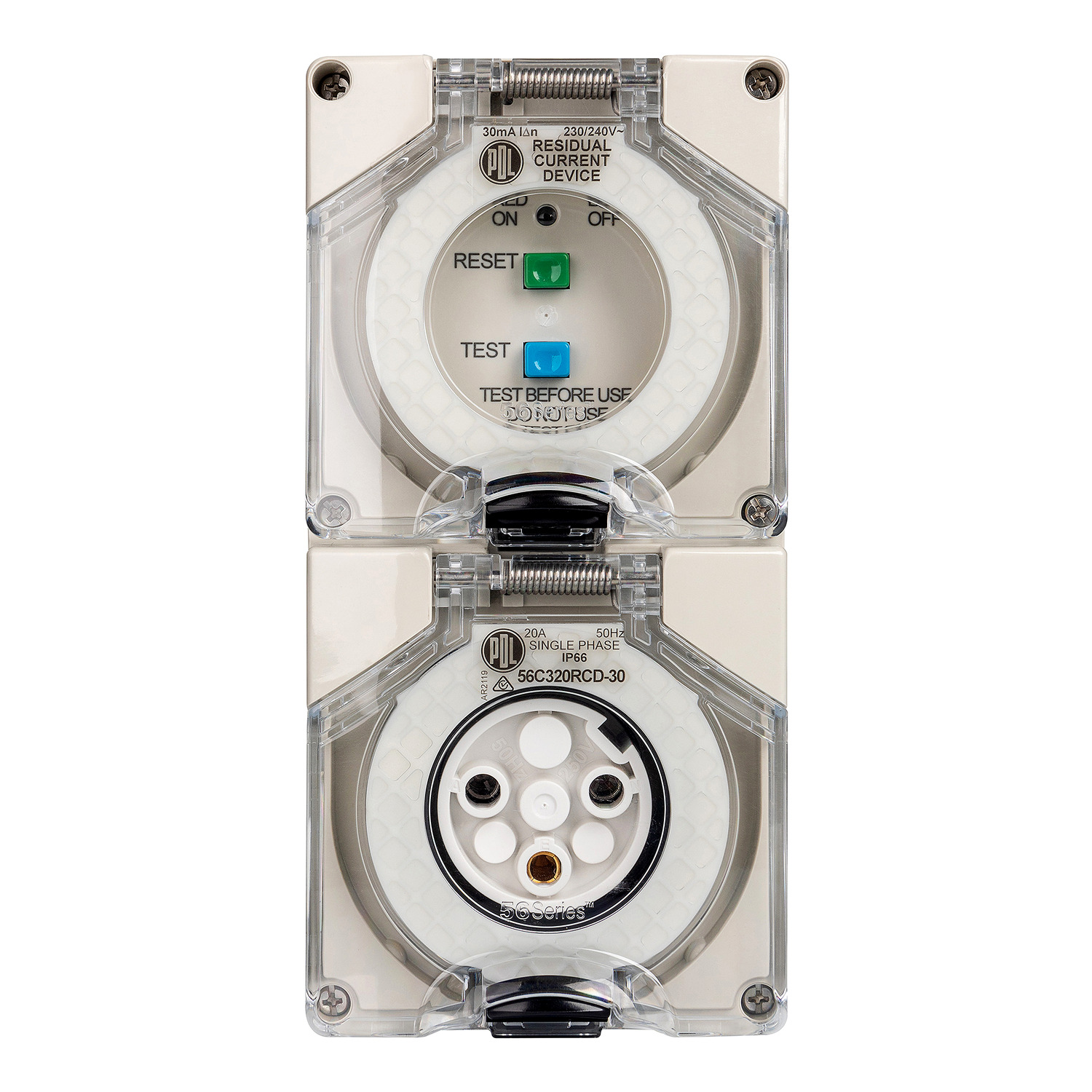 RCD Protected Socket, 56 Series, 20A 240V 3-Round Pin IP66