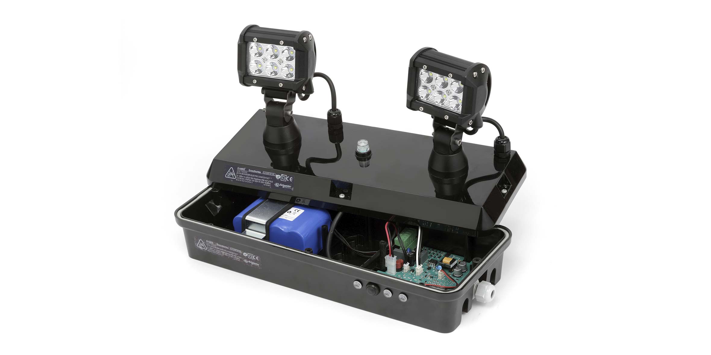 Exiway Smartduo je namenjen mestima sa visokim plafonima i krovovima, velikim površinama i teškim sredinama. Ona nudi: - visoke performanse i kvalitet - 2 prednja svetla do 2400 lumena (po 1200) - EN 60598-1, 60598-2-22, EN 62034, EN 62471-Group 2 usaglašeno - Vreme intervencije manje od 0,5 sek. (oblasti visokog rizika)