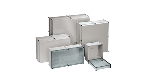 • 14 dimensions • 3 types of covers (plain or transparent polycarbonate or polyester) • 2 cover depths (45 and 95 mm) • Easy creation of assemblies (heights and widths all multiple of 9 cm) • Specific range of accessories