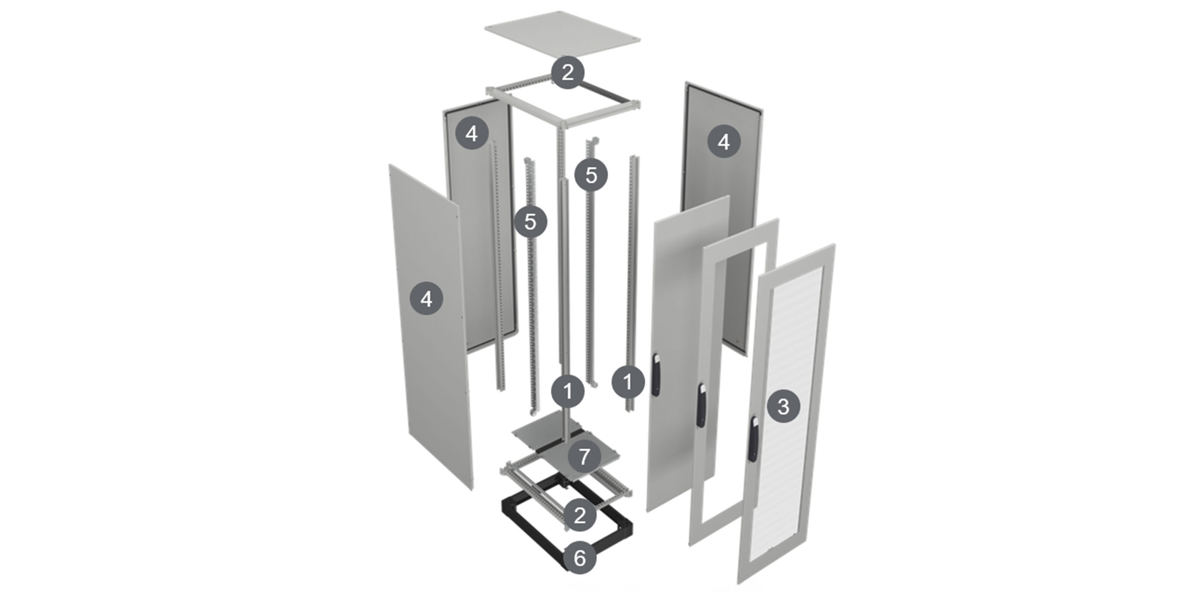 - Inköp som kit driver till ett oöverträffat antal möjliga konfigurationer: skåp- och rackdimensioner, dörr- och racktyper, ytterligare krav