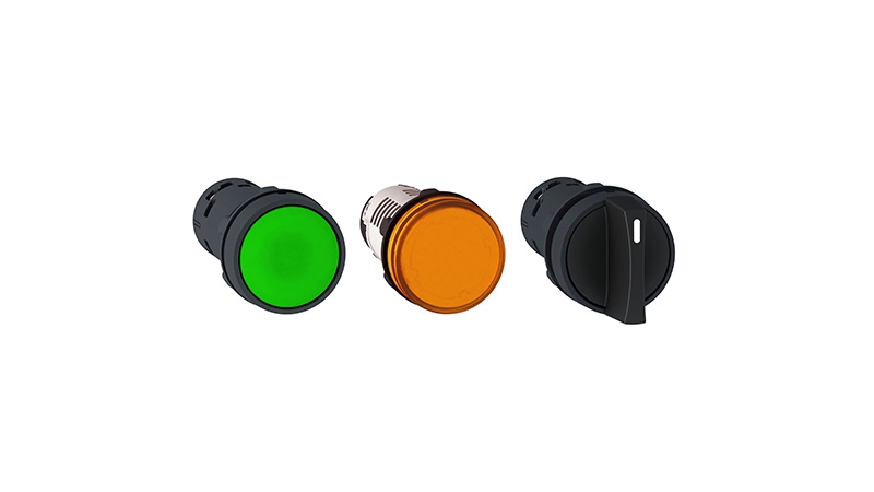Harmony XB7 Plastic monolithic push buttons, selector switches, and pilot lights for 22 mm diameter mounting. Suited for most common installations in commercial buildings, tertiary sector, and industry, the 22mm diameter plastic monolithic XB7 range offers simple and easy-to-install control and signalling units (with LED or BA9s base lamps). The plastic bezels are paired with round heads available in a choice of 6 colours.