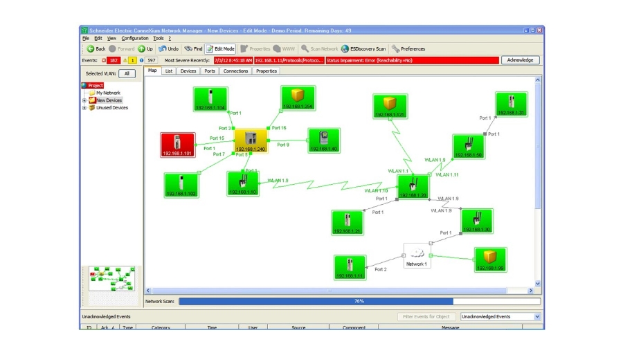 The specially developed ConneXium Network Manager (CNM) enables flexible and customizable expansion. Wherever individual network components are combined to create an overall system, ConneXium Network Manager (CNM) provides a solution for configuring and monitoring the administrable Schneider Electric™ devices, including switches, routers, firewalls, ConneXium Wi-Fi devices, and products from various manufacturers. Designed for effective industrial supervision, CNM can be easily integrated into SCADA applications. It offers a built-in SNMP to the OPC server. The graphical user interface is available as an ActiveX control.
