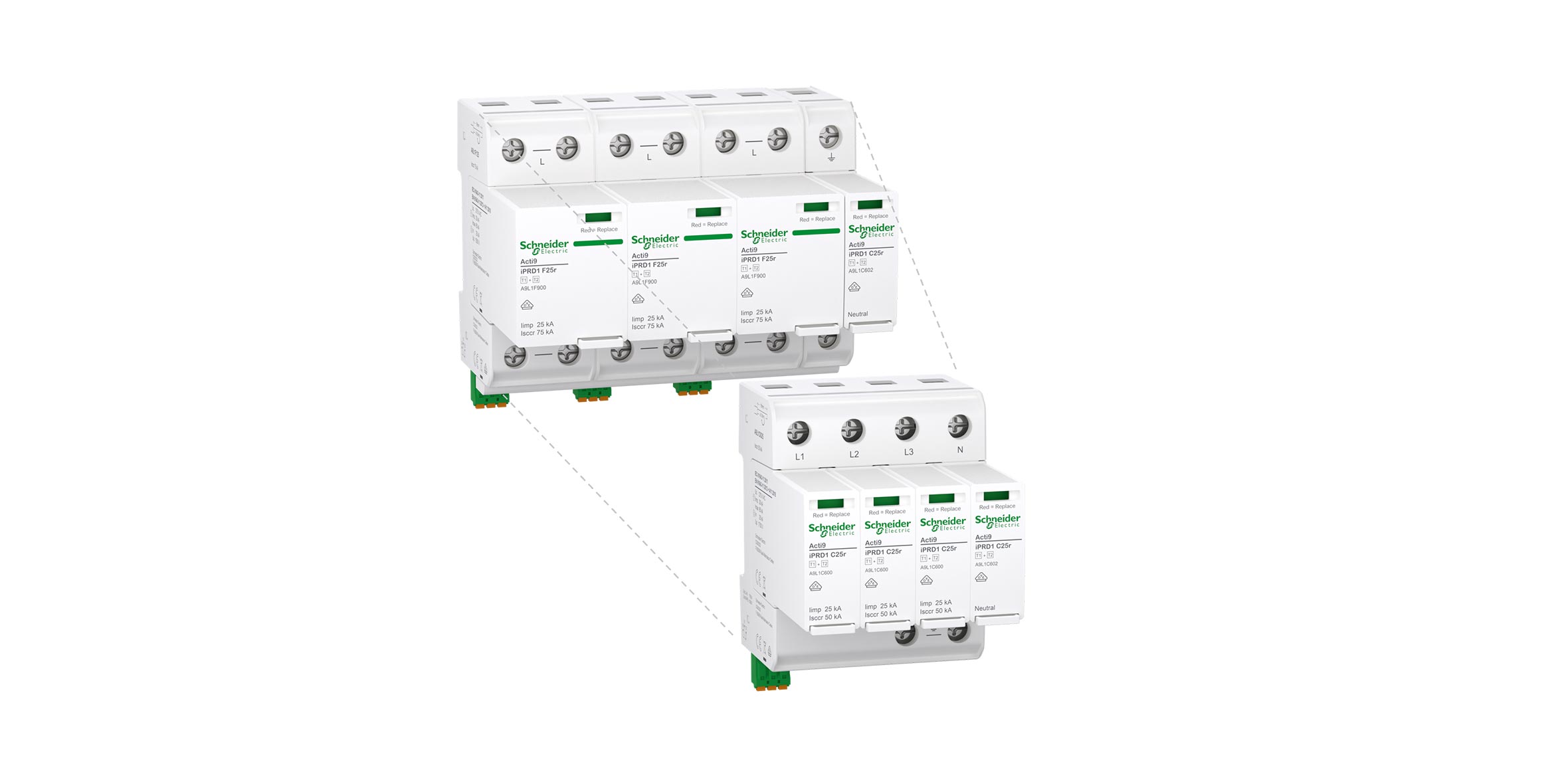 The new Acti9 iPRD1 DIN rail Surge Protection Devices (SPD) range is designed to protect your electrical installations and buildings from surges due to direct and indirect lightning strikes. It increases safety, boosts efficiency, and improves business continuity, even in the most demanding environments.Acti9 iPRD1 SPD has a sustainable design with easy maintenance, output dry contacts for remote monitoring, and versions for TT, TN-S, TN-C, and IT earthing systems, extending your equipment efficiency and life.