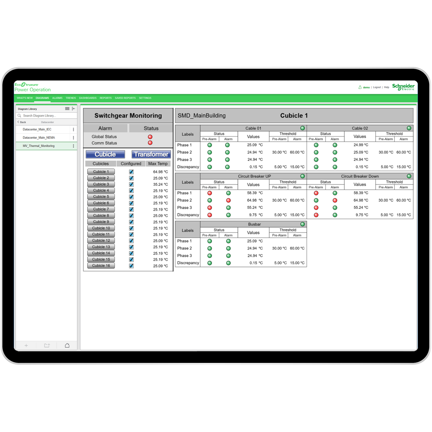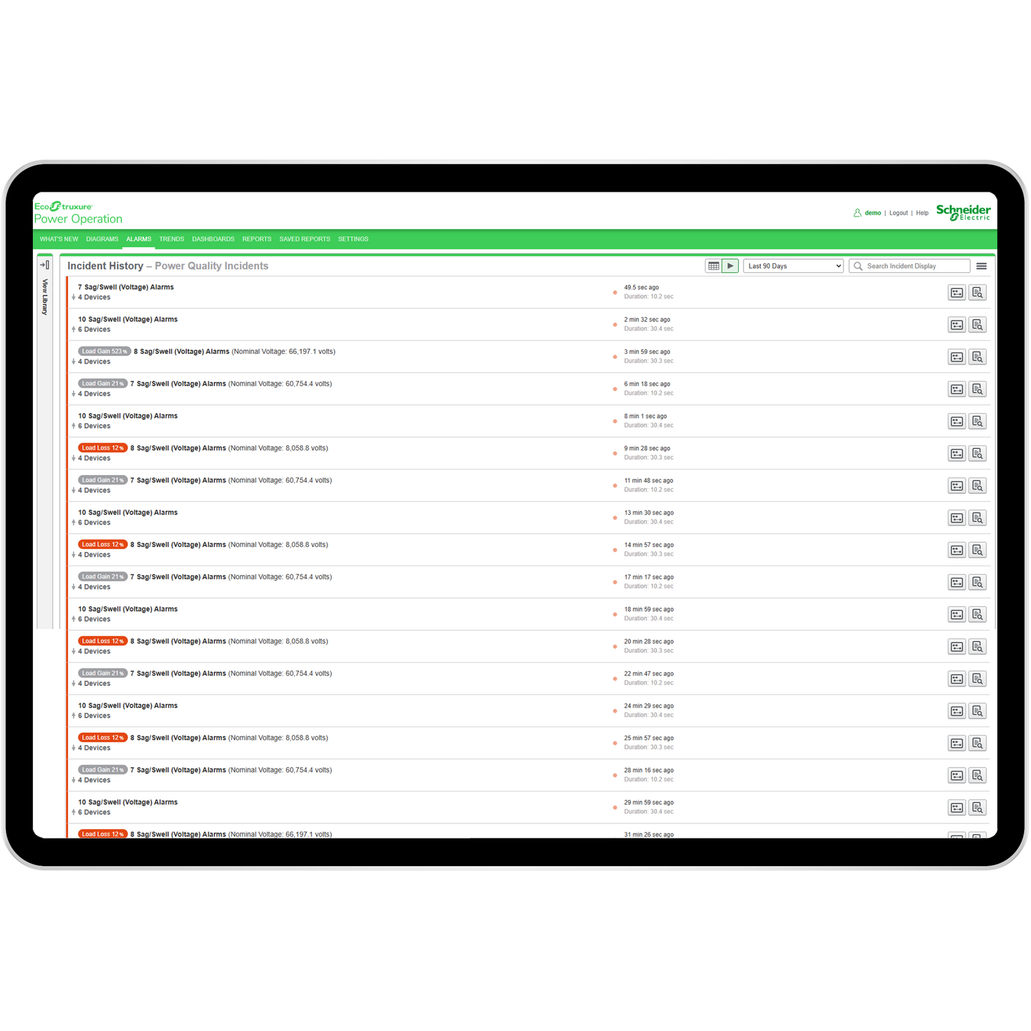 Power quality and reliability is a critical component of a profitable and competitive production line. EcoStruxure Power Operation reduces the risk of poor power quality and reliability and helps ensure optimised operations. Use the intuitive HMI to analyse alarms in the context of electrical one-lines for fast root cause analysis. Secure, operator-dedicated, multi-user data offers customised user interfaces and can be fully optimised to your operational workflow, improving operator efficiency. Optimise facility energy performance, ensure energy efficiency compliance, and make smarter, faster decisions that affect your overall profitability.