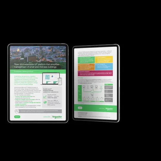 EcoStruxure Building ActivateDiscover how our simple, cost-effective AI-powered platform for small and mid-size buildings reduces energy usage and carbon emissions, increases operational efficiency, and improves occupant comfort and well-being with a payback of less than 2 years.
