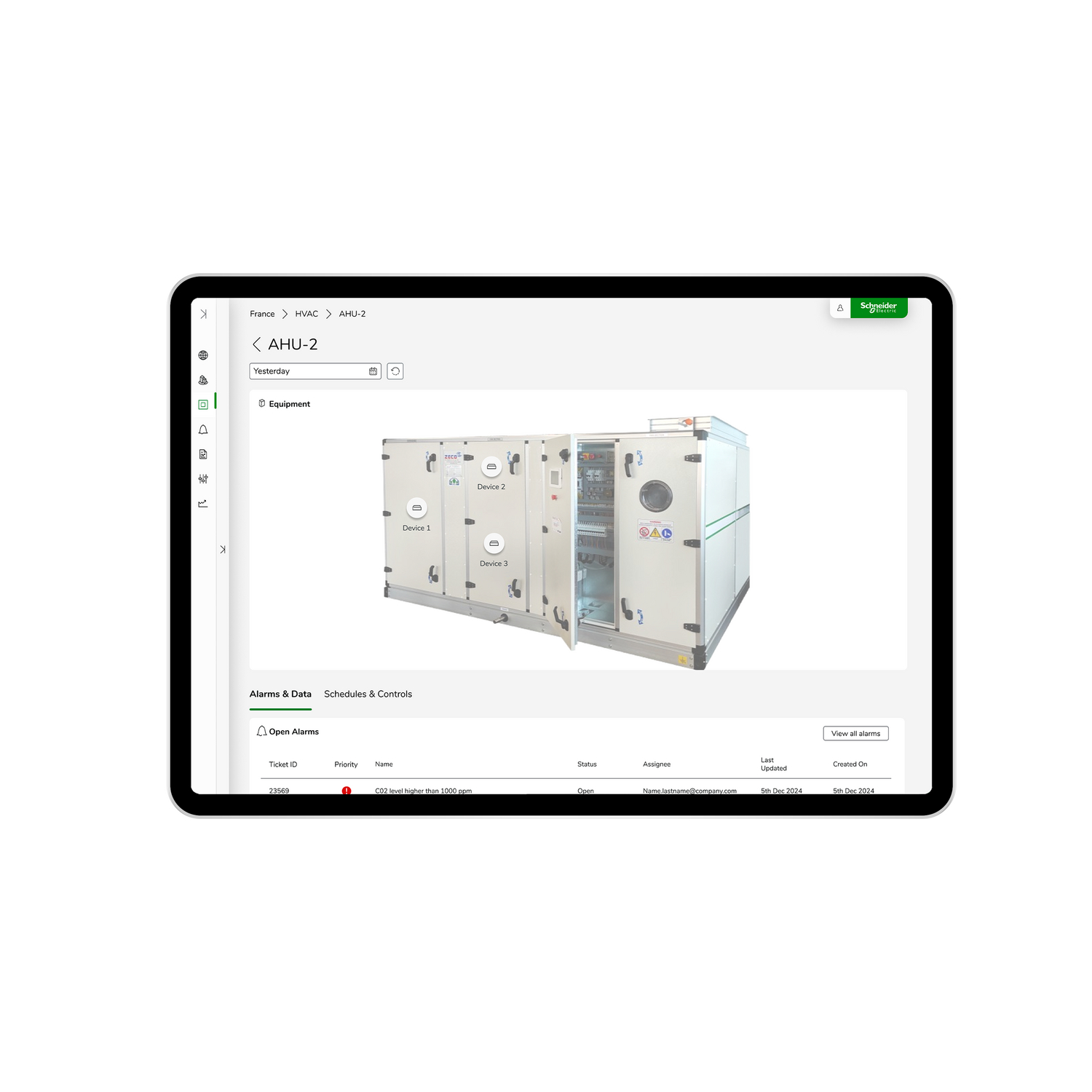 EcoStruxure Building Activate continuously monitors your equipment and sends real-time alerts on anomalies — helping you take proactive action without needing dedicated specialists. It detects issues across heating, cooling, refrigeration, lighting systems, and more.