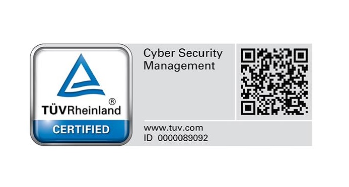 See the TÜV Rheinland Cyber Security Management (CSM) certificate