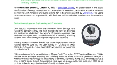 Schneider Electric included in the Top 50 for World’s Most Attractive Employers (.pdf, Press Release)