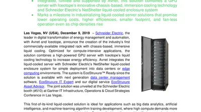 Schneider Electric Announces Industry’s First Integrated Rack with Immersed, Liquid-Cooled IT for Data Centers (.pdf, Press Release)