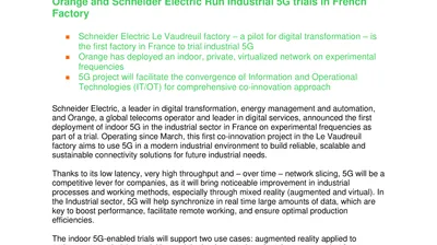 Orange and Schneider Electric Run Industrial 5G trials in French Factory (.pdf, Press Relase)
