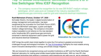Top 10 Global Innovations. Schneider Electric’s SF6-free Switchgear Wins ICEF Recognition (.pdf)
