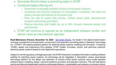 Schneider Electric invests in Operation Technology, Inc. (“ETAP”) to spearhead smart and green electrification (.pdf)