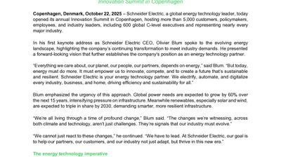Schneider Electric’s third-quarter sustainability progress focuses on urgent climate action and meeting 2021 full year commitments (.pdf)