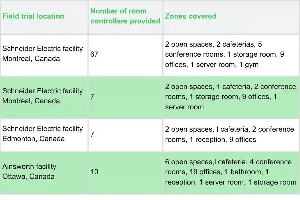 Our Dynamic HVAC Optimization algorithm applied in room controllers has been tested in real-world environments, in a variety of settings, ranging from office spaces and meeting rooms to storage areas and server facilities, to assess its effectiveness in managing both comfort and energy use.