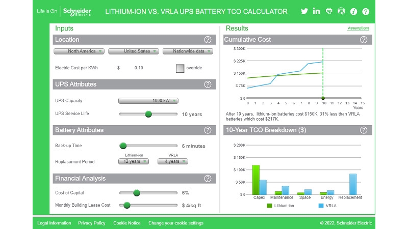 Start calculationLi-ion vs. VRLA UPS battery TCO calculator