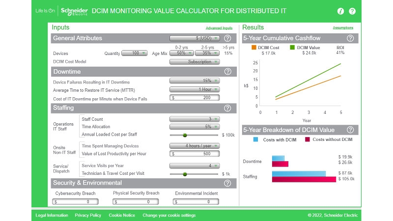 Estimate the potential value of DCIM monitoring and alarming for distributed IT.